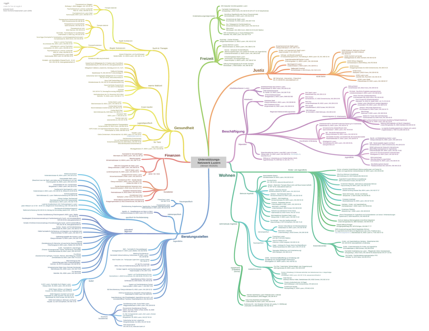 Immer wieder sprechen uns Fachpersonen – aus der Berufsrichtung Soziale Arbeit oder verwandte Professionen – auf die Netzwerkkarte an, welche in unseren Beratungsbüros hängt. Darauf sind über 180 Einrichtungen (Stand Oktober 2025) grafisch aufgeführt, welche auf Hilfsangebote für Menschen in prekären Lebenenslagen hinweisen.